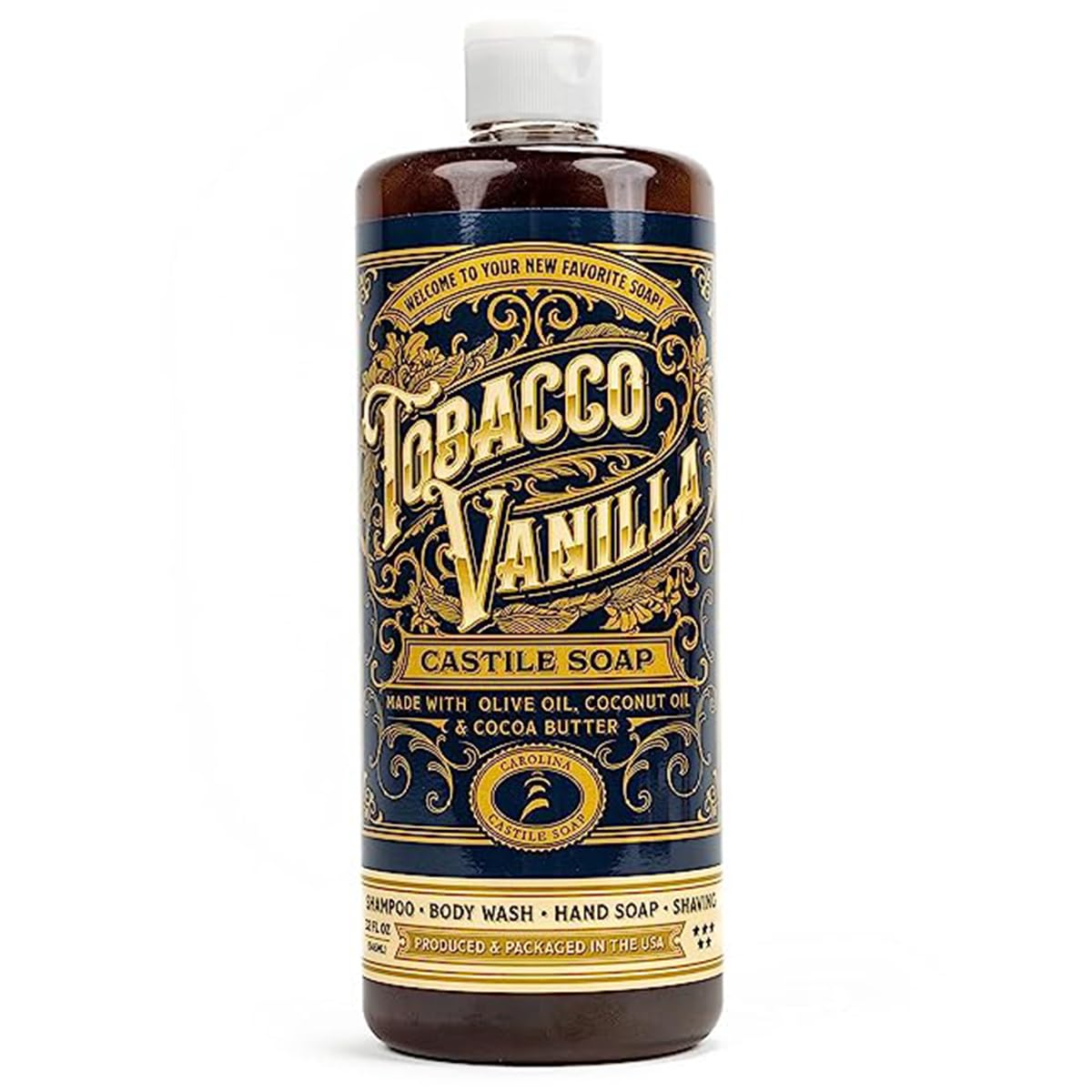 Castile Soap Liquid Body Wash Sensitive Skin Ð Natural Soap for Men with Olive Oil, Cocoa Butter & Coconut Oil Ð Vegan Mens Body Soap & Mens Shampoo Ð Tobacco Vanilla Liquid Soap by Carolina Castile