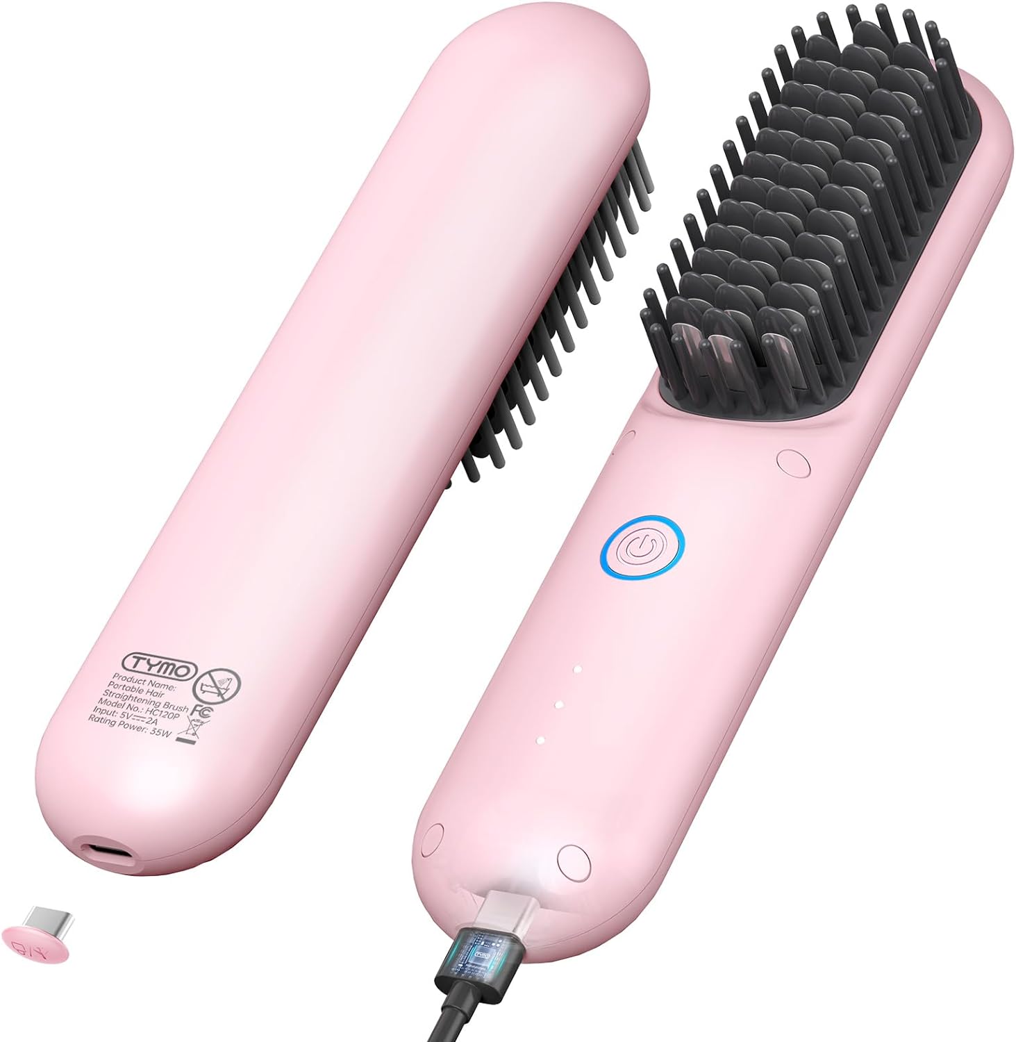 Cordless Hair Straightener Brush, TYMO Porta Straightening Brush for Women, Touch ups on-The-go Styling Hot Comb with Negative Ion, Lightweight & Mini Travel, USB Rechargeable