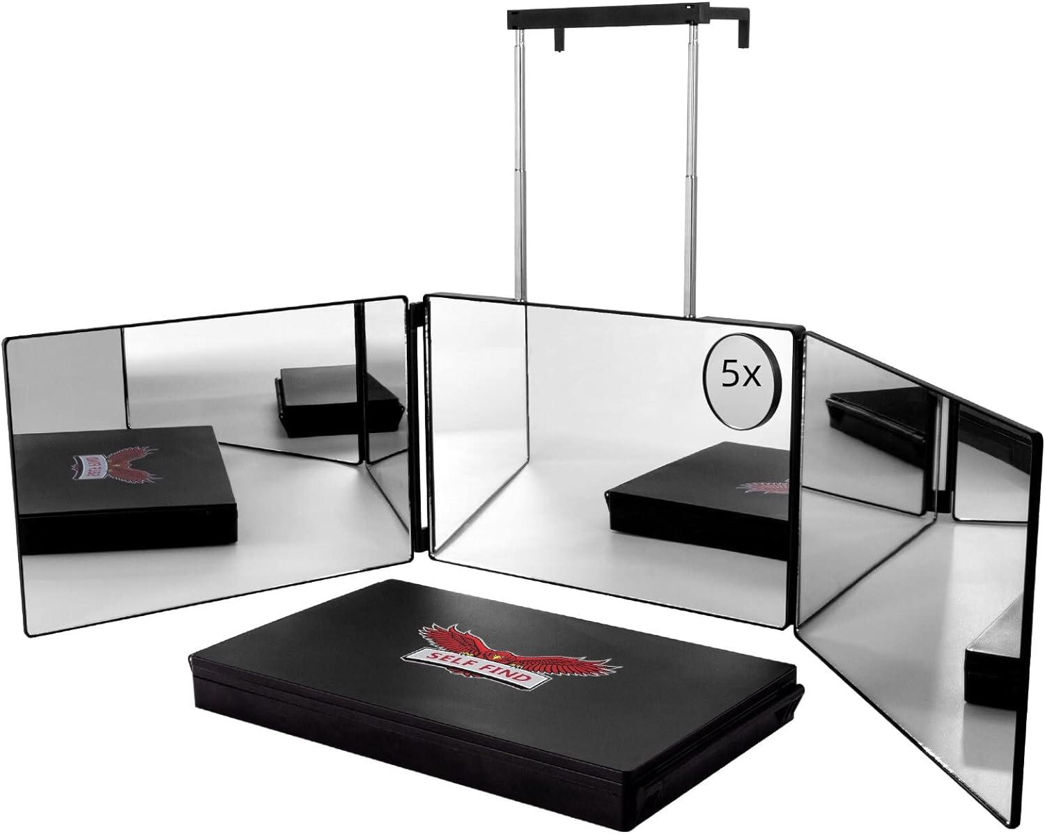 SELF FIND 3 Way Mirror for Hair Cutting, 360¡ Mirror for Haircuts for Men, Barber /Self Cut Mirror with Height Adjustable Telescoping Hooks, and 5X Magnifying for Makeup and Hair Styling